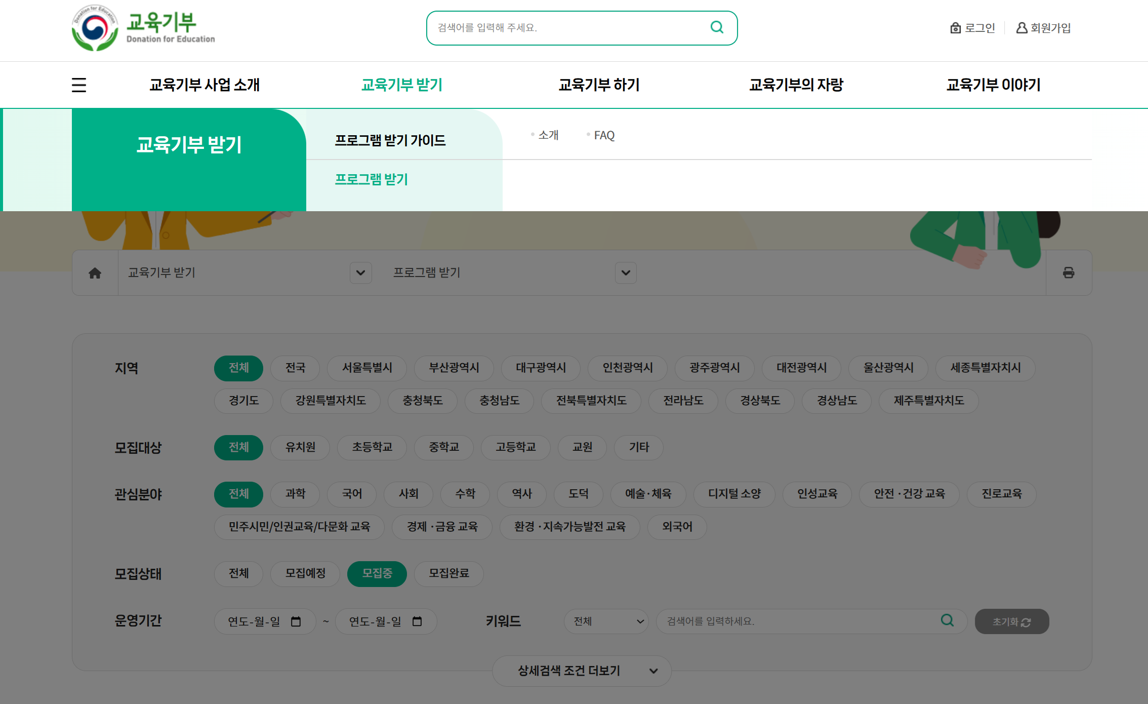 ▲ '교육기부 포털사이트 > 교육기부 프로그램 보기' 화면 ▲